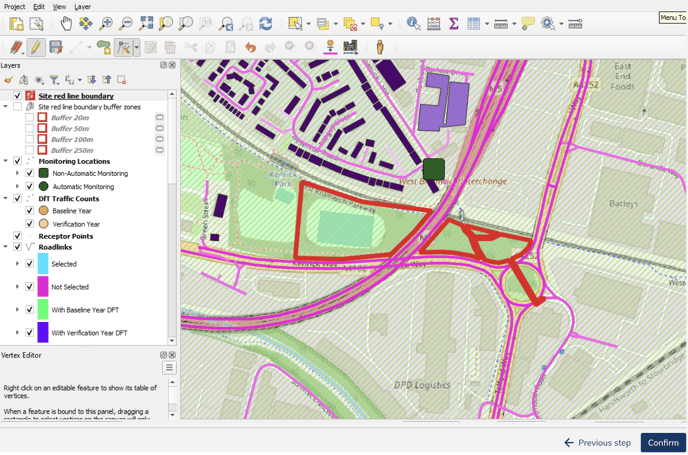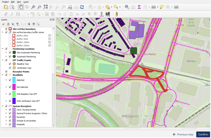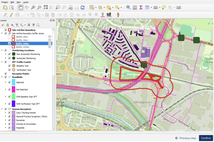 Airly AI allows you to check buffer zones for a red line in your assessment. Airly AI calculates four buffer zones: 20 metres, 50 metres, 100 metres, and 250 metres. Learn how to use these buffer zones effectively.